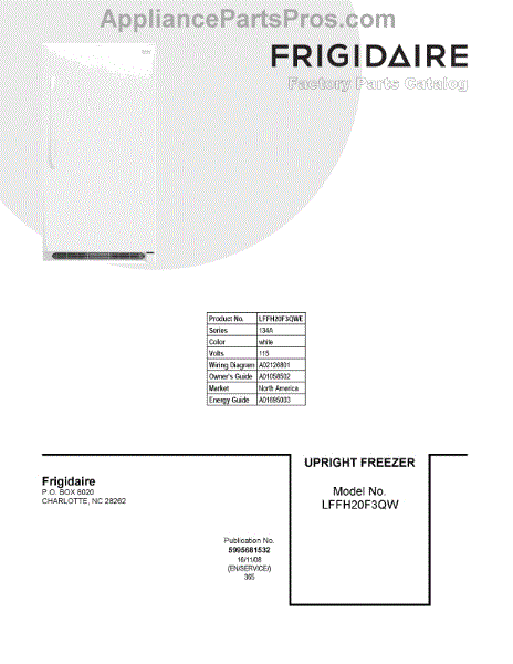 Parts for Frigidaire LFFH20F3QWE: 01 - Cover Sheet Parts