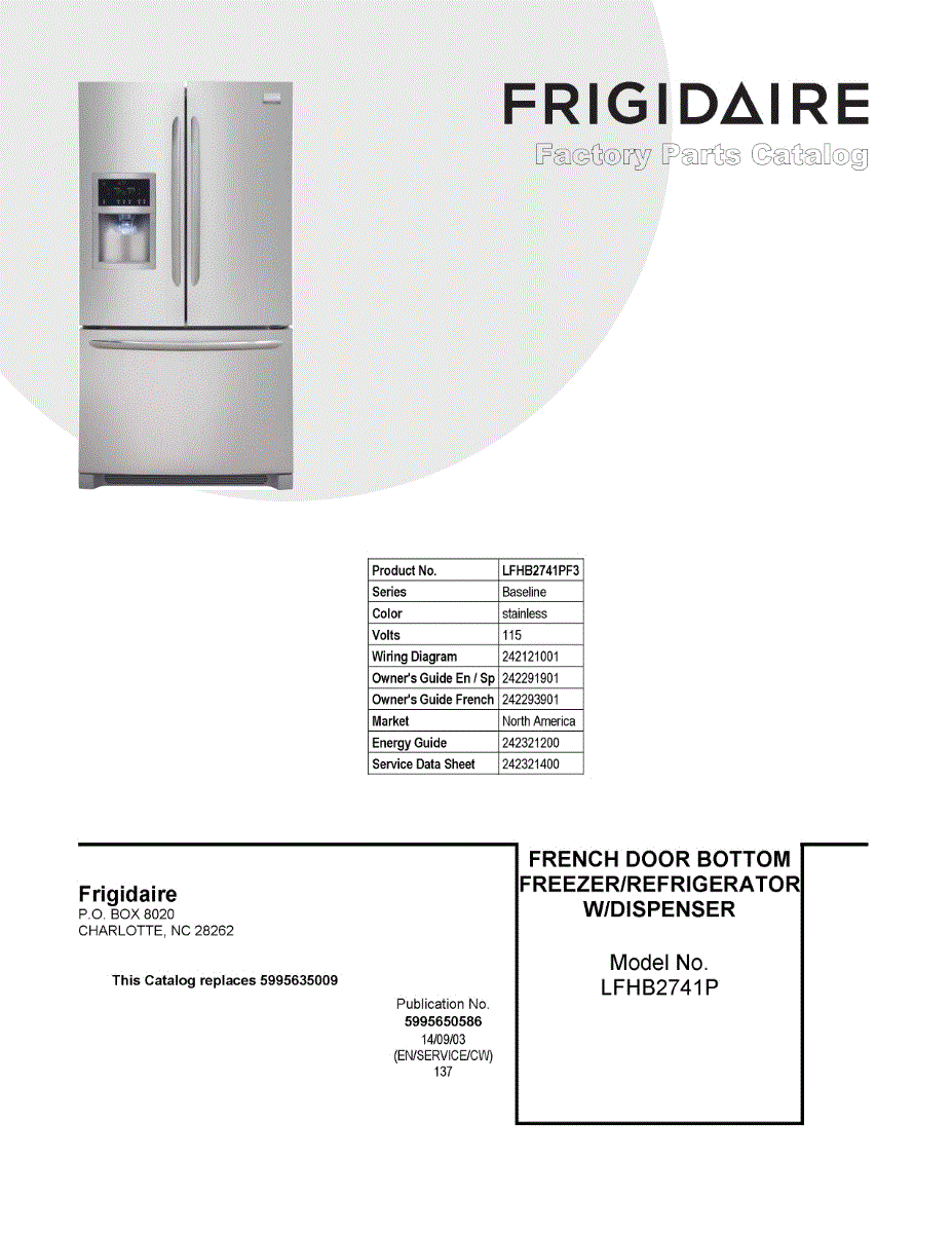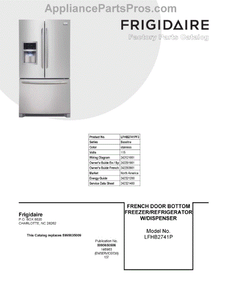 Parts for Frigidaire LFHB2741PF3: 01 - Cover Sheet Parts