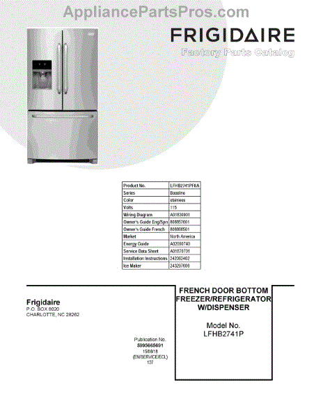 Parts for Frigidaire LFHB2741PF8A: 01 - Cover Sheet Parts