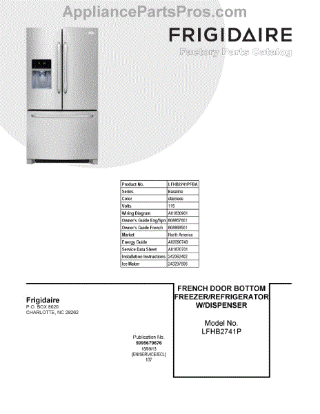 Parts for Frigidaire LFHB2741PFBA: 01 - Cover Sheet Parts