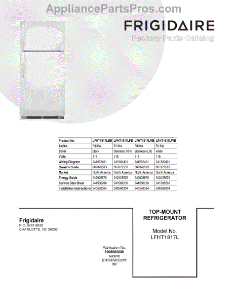 Parts for Frigidaire LFHT1817LWB: 01 - Cover Sheet Parts
