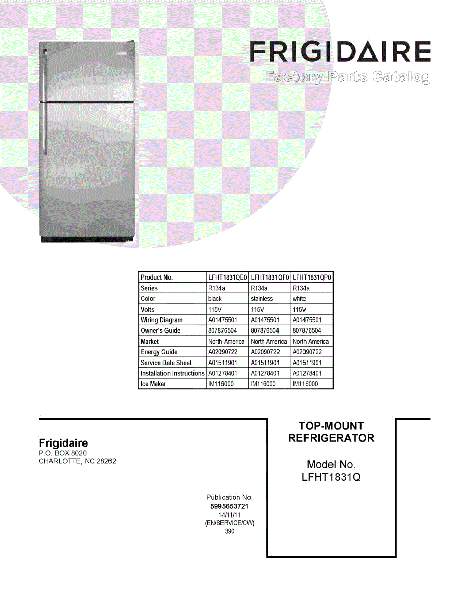 Parts for Frigidaire LFHT1831QE0: 01 - Cover Sheet Parts