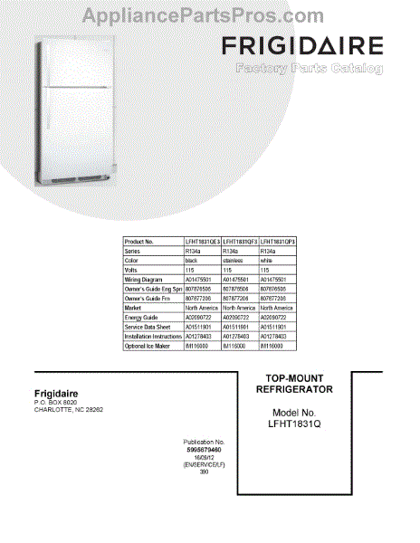 Parts for Frigidaire LFHT1831QE3: 01 - Cover Sheet Parts