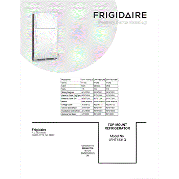 Parts for Frigidaire LFHT1831QE5: 01 - Cover Sheet Parts
