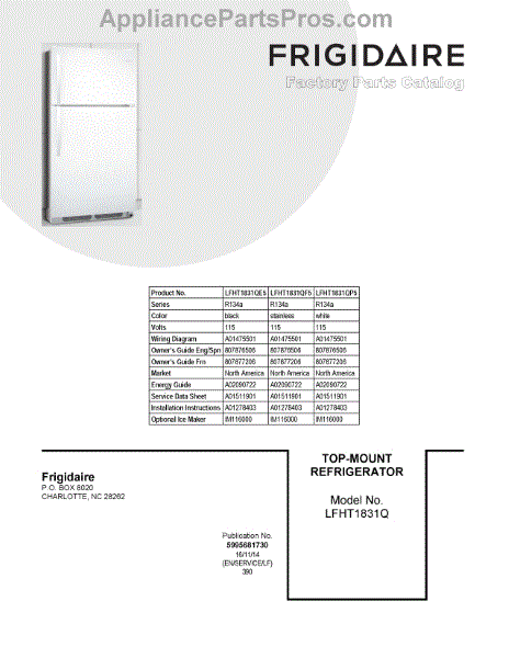 Parts for Frigidaire LFHT1831QF5: 01 - Cover Sheet Parts