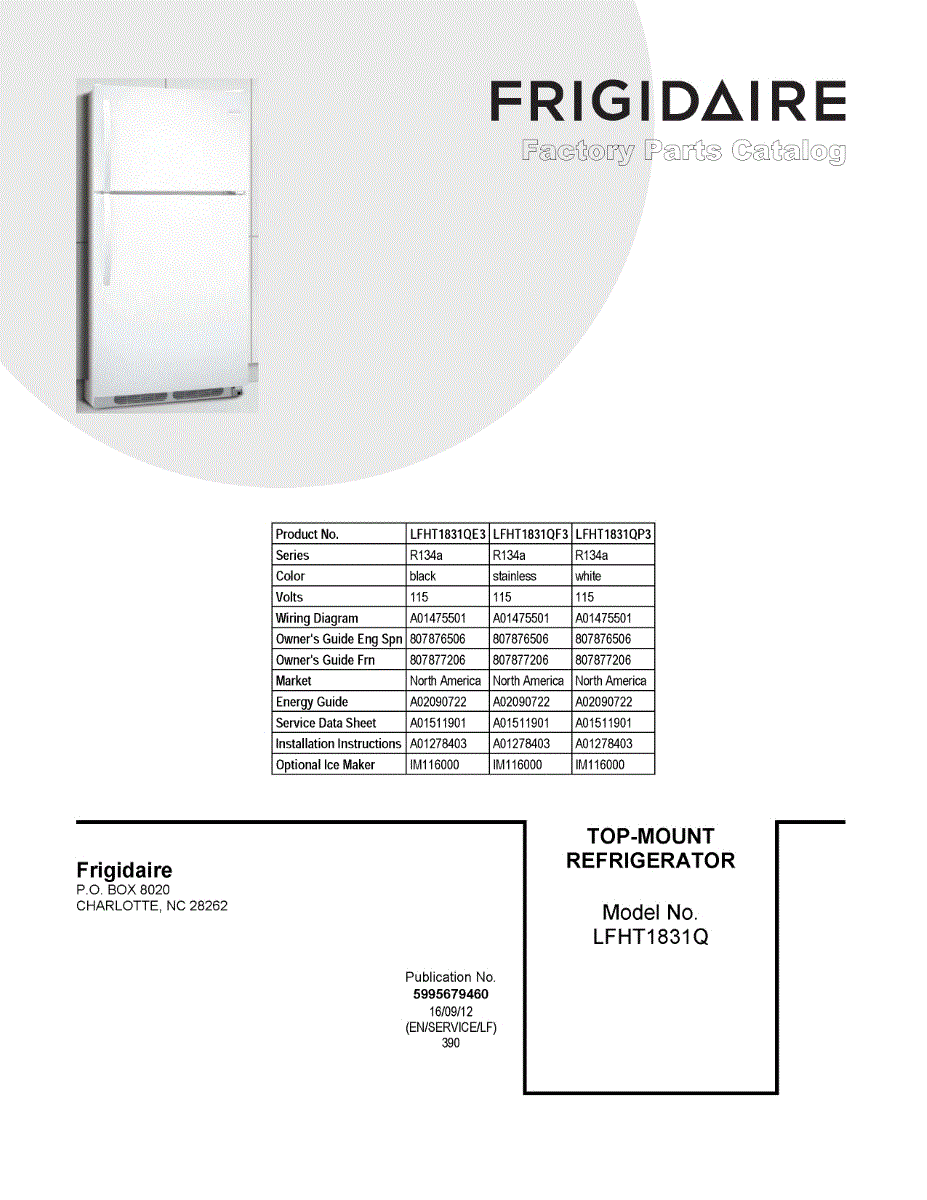 Parts for Frigidaire LFHT1831QP3: 01 - Cover Sheet Parts