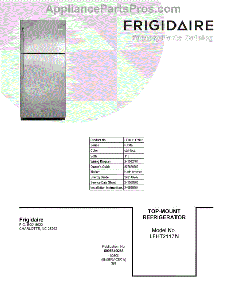 Parts for Frigidaire LFHT2117NF6: 01 - Cover Sheet Parts