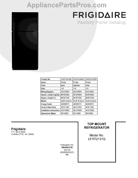 Parts for Frigidaire LFHT2131QF1: 01 - Cover Sheet Parts