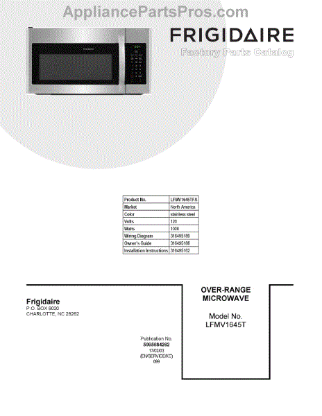 Parts for Frigidaire LFMV1645TFA: 01 - Cover Sheet Parts