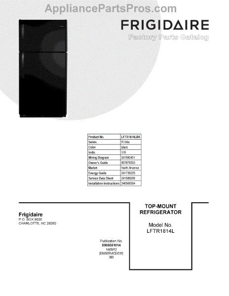 Parts for Frigidaire LFTR1814LBK: 01 - Cover Sheet Parts
