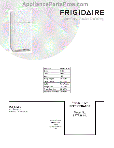 Parts for Frigidaire LFTR1814LWL: 01 - Cover Sheet Parts
