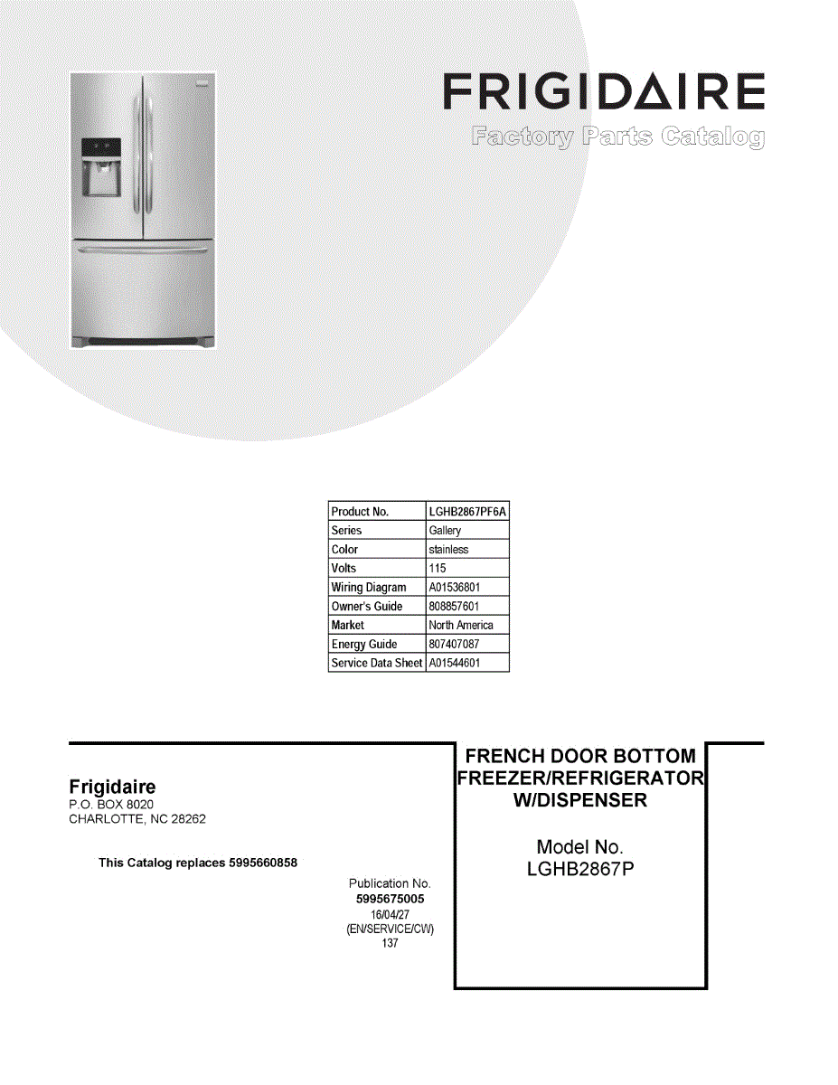 Parts for Frigidaire LGHB2867PF6A: 01 - Cover Sheet Parts