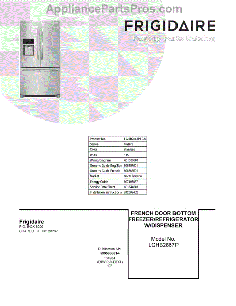 Parts for Frigidaire LGHB2867PFCA: 01 - Cover Sheet Parts