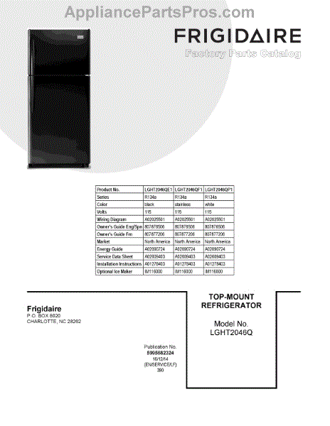 Parts for Frigidaire LGHT2046QF1: 01 - Cover Sheet Parts