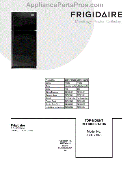 Parts for Frigidaire LGHT2137LE8: 01 - Cover Sheet Parts