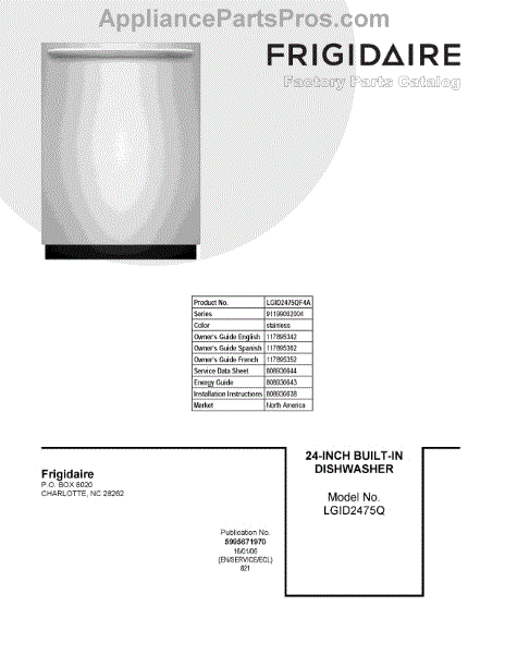 Parts for Frigidaire LGID2475QF4A: 01 - Cover Sheet Parts