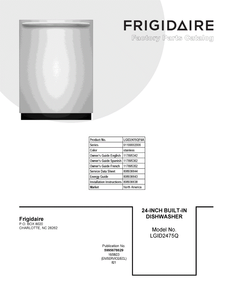 Parts for Frigidaire LGID2475QF6A: 01 - Cover Sheet Parts