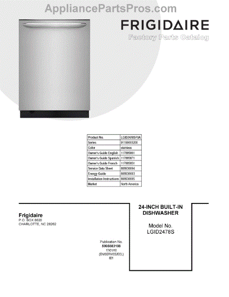 Parts for Frigidaire LGID2478SF0A: 01 - Cover Sheet Parts