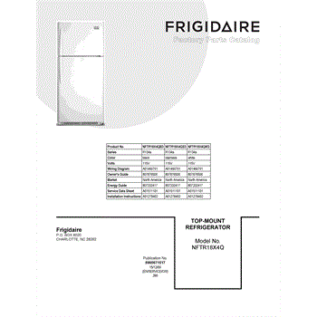 Parts for Frigidaire NFTR18X4QB3: 01 - Cover Sheet Parts