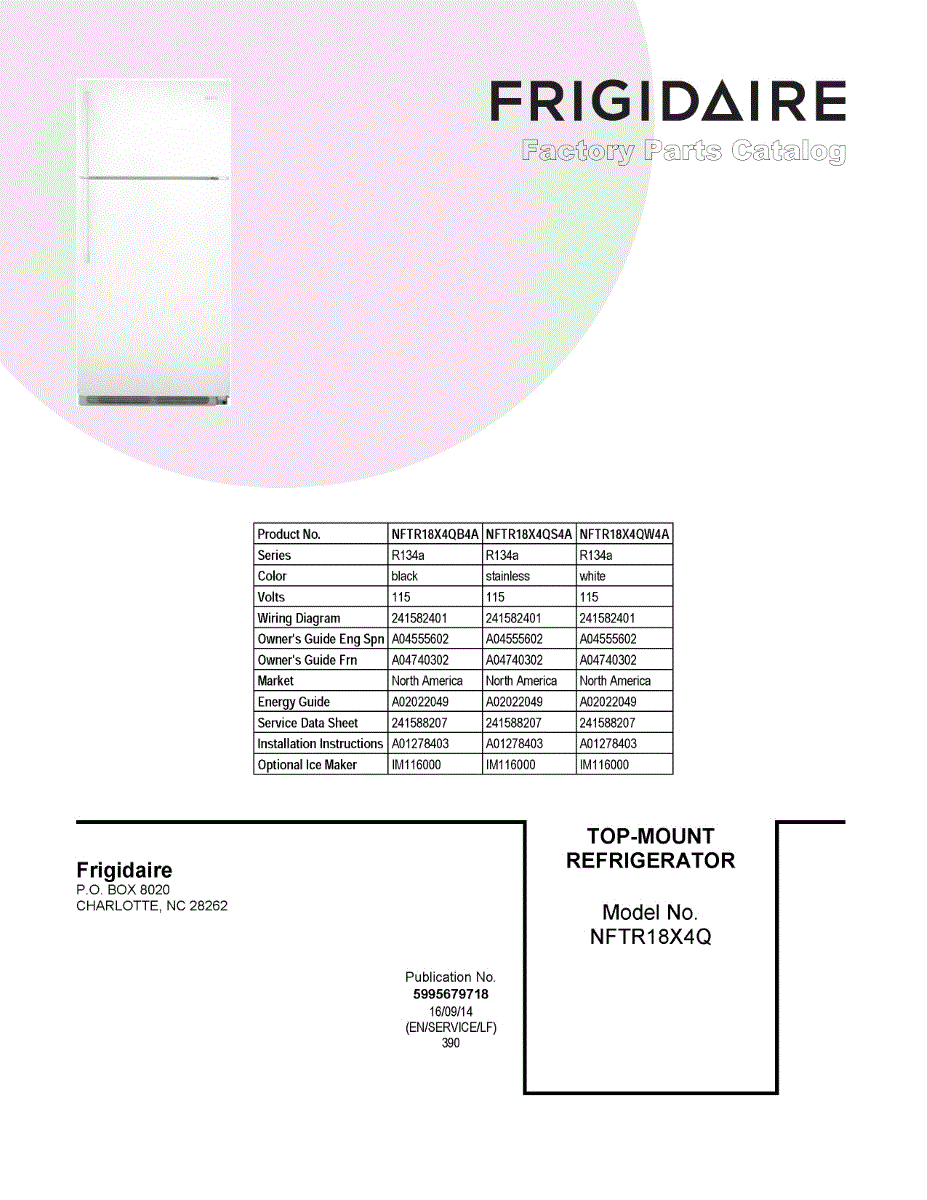Parts for Frigidaire NFTR18X4QB4A: 01 - Cover Sheet Parts