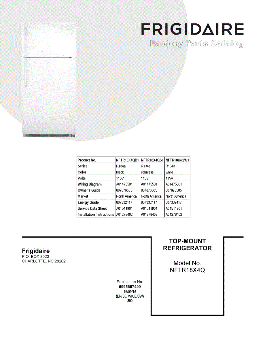 Parts for Frigidaire NFTR18X4QS1: 01 - Cover Sheet Parts