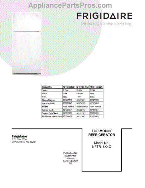 Parts for Frigidaire NFTR18X4QW1: 01 - Cover Sheet Parts