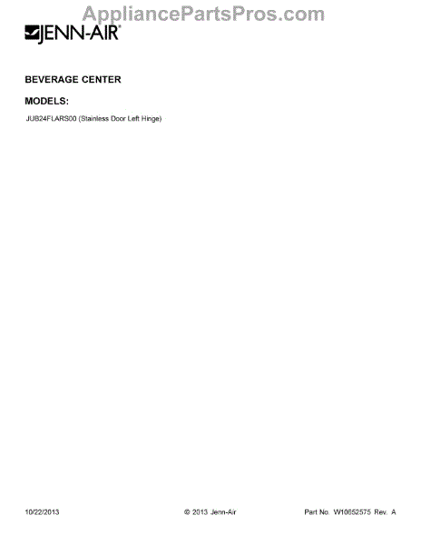 Parts for Jenn-Air JUB24FLARS00: 01 - Cover Sheet Parts