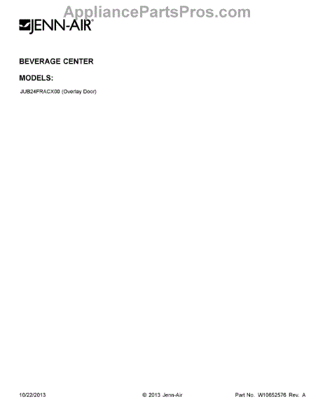 Parts for Jenn-Air JUB24FRACX00: 01 - Cover Sheet Parts