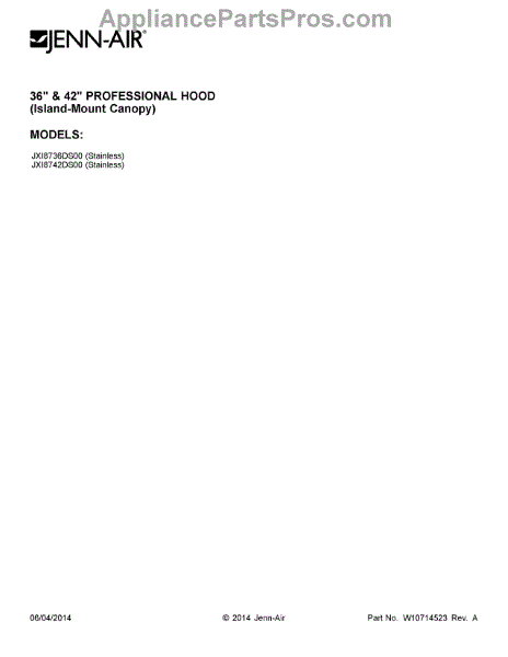 Parts for Jenn-Air JXI8742DS00: 01 - Cover Sheet Parts