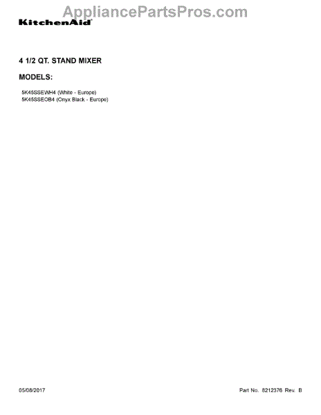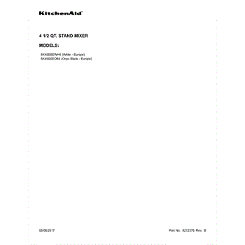 Parts for Kitchenaid 5K45SSEOB4: 01 - Cover Sheet Parts