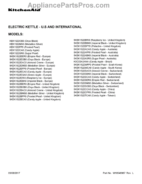 Parts for Kitchenaid 5KEK1522ASR0: 01 - Cover Sheet Parts