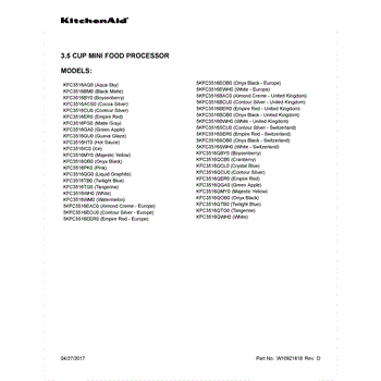 Parts for Kitchenaid 5KFC3516SWH0: 01 - Cover Sheet Parts