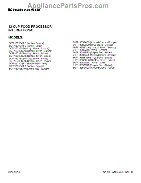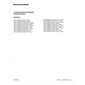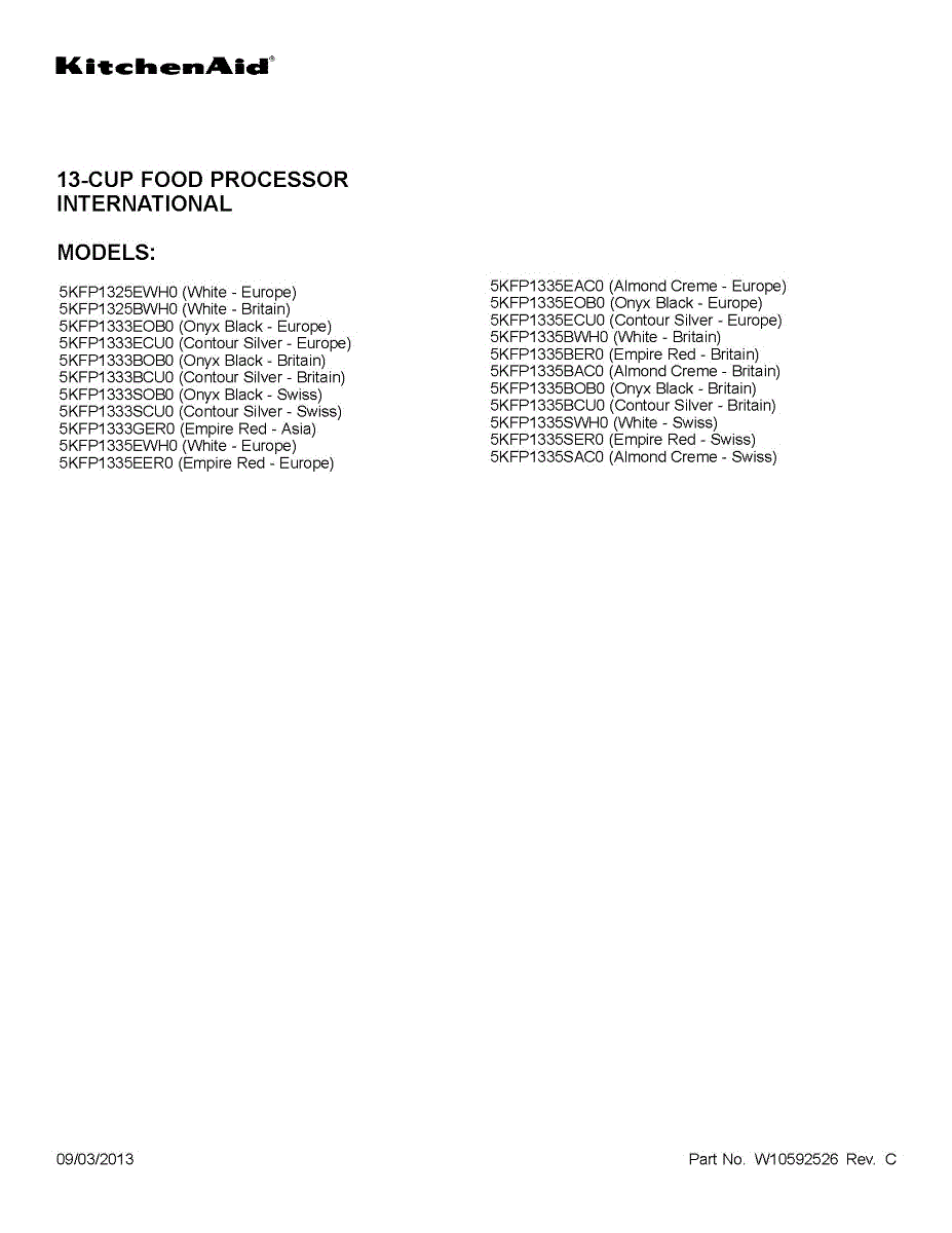 Parts for Kitchenaid 5KFP1335EOB0: 01 - Cover Sheet Parts