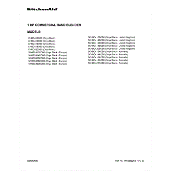 Parts for Kitchenaid 5KHBC420EOB0: 01 - Cover Sheet Parts