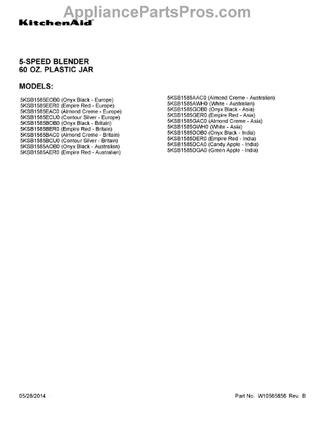 Parts for Kitchenaid 5KSB1585GAC0: 01 - Cover Sheet Parts