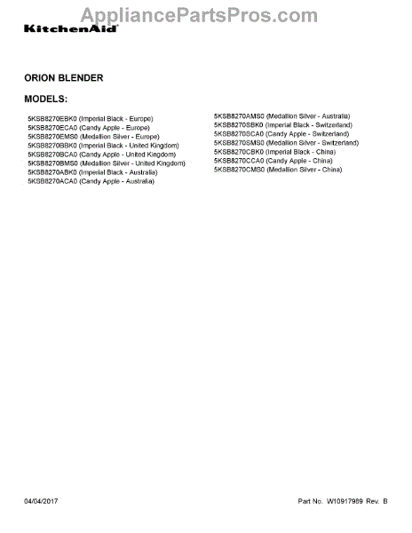 Parts for Kitchenaid 5KSB8270CBK0: 01 - Cover Sheet Parts