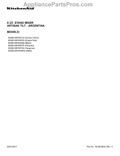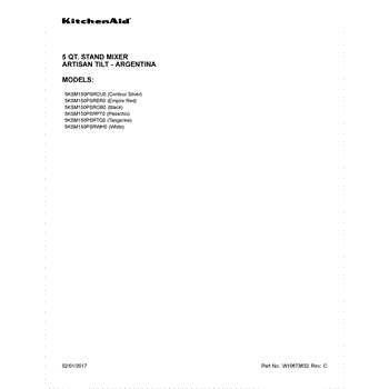 Parts for Kitchenaid 5KSM150PSRPT0: 01 - Cover Sheet Parts