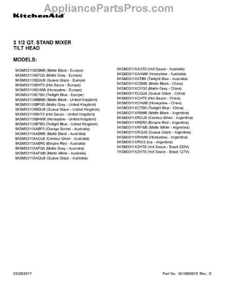 Parts for Kitchenaid 5KSM3311XRBM0: 01 - Cover Sheet Parts