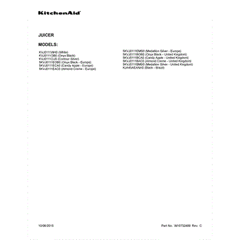 Parts for Kitchenaid 5KVJ0111BAC0: 01 - Cover Sheet Parts
