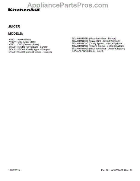 Parts for Kitchenaid 5KVJ0111EMS0: 01 - Cover Sheet Parts