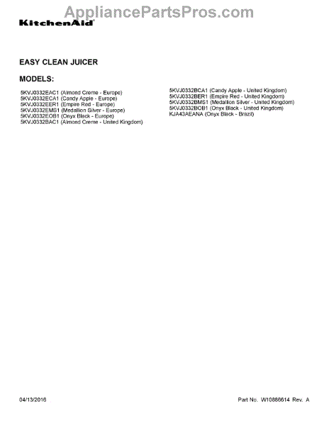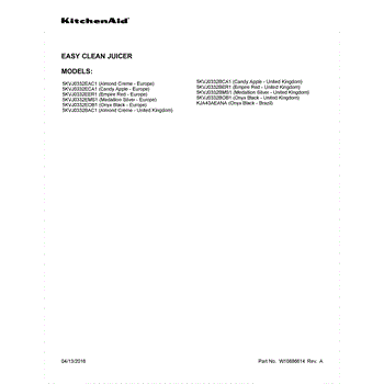 Parts for Kitchenaid 5KVJ0332EER1: 01 - Cover Sheet Parts