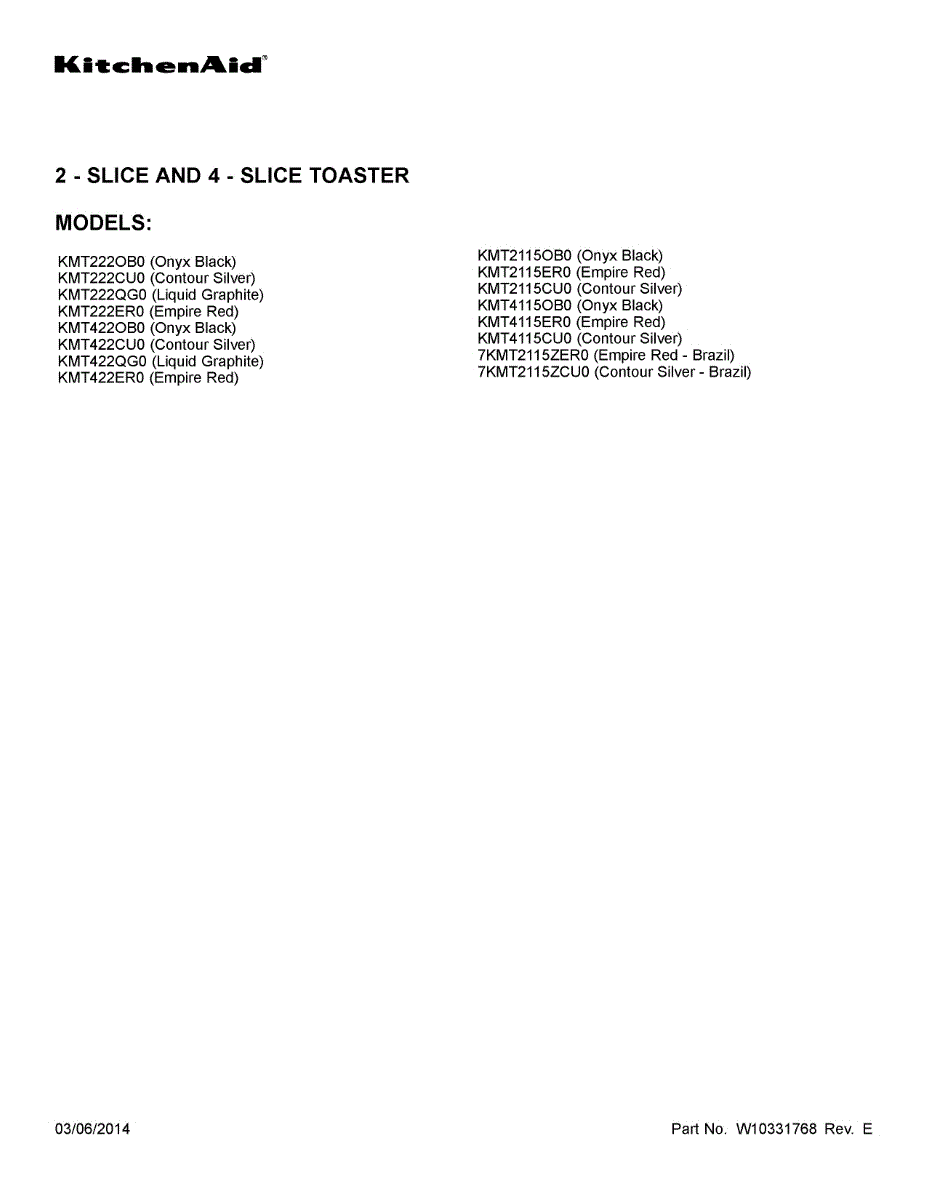 Kitchenaid Toaster Parts