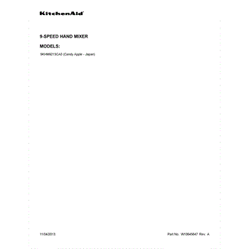 Parts for Kitchenaid 9KHM9213CA0: 01 - Cover Sheet Parts