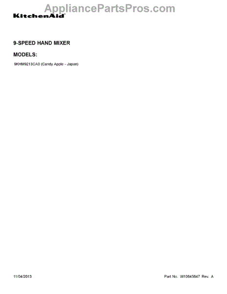 Parts for 9KHM9213CA0
