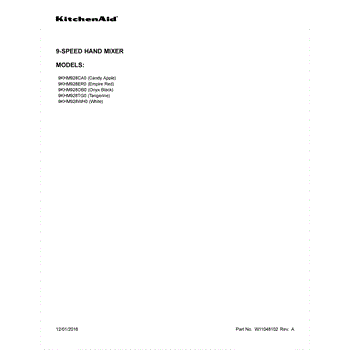 Parts for Kitchenaid 9KHM928CA0: 01 - Cover Sheet Parts