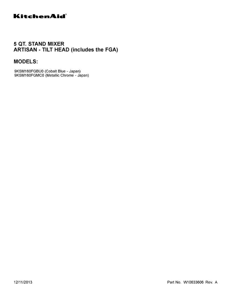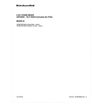 Parts for Kitchenaid 9KSM160FGMC0: 01 - Cover Sheet Parts