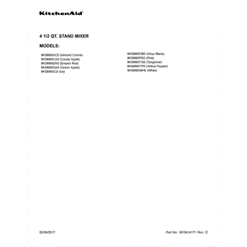 Parts for Kitchenaid 9KSM95OB0: 01 - Cover Sheet Parts