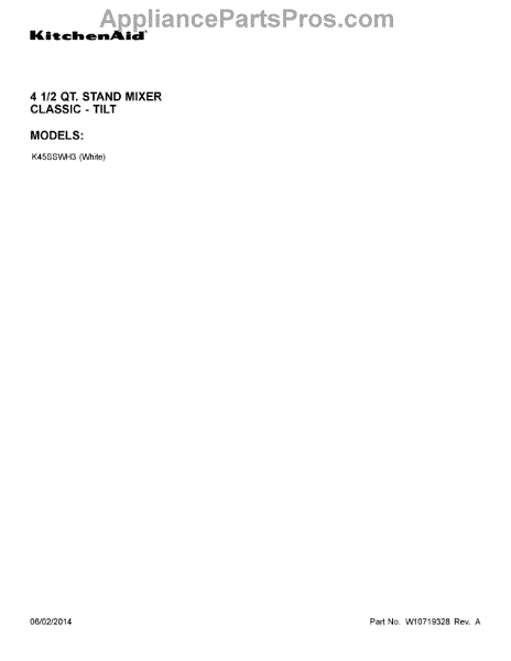 Parts for Kitchenaid K45SSWH3: 01 - Cover Sheet Parts