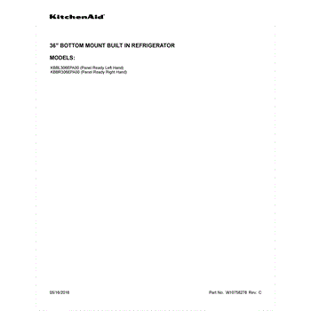 Parts for Kitchenaid KBBL306EPA00: 01 - Cover Sheet Parts