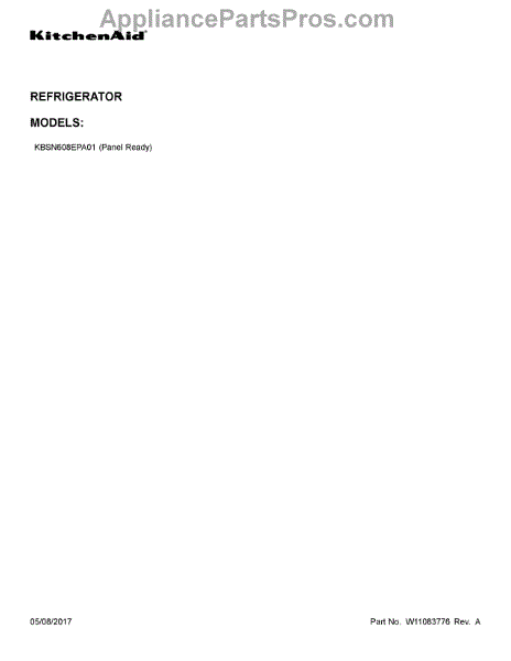 Parts for Kitchenaid KBSN608EPA01: 01 - Cover Sheet Parts